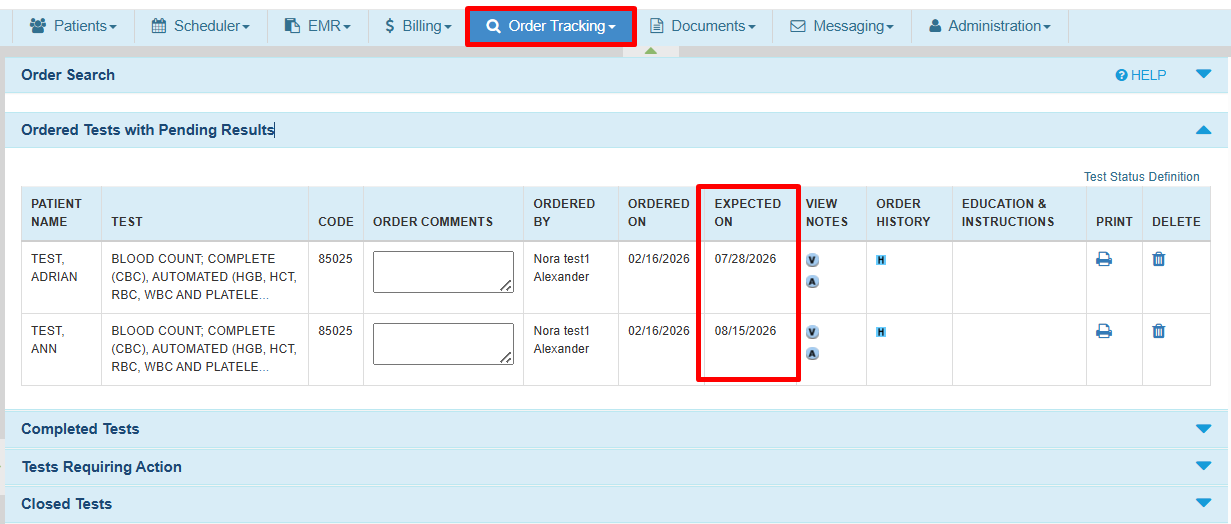 We are pleased to introduce a new enhancement that allows Practice Administrators to configure how the system calculates the Expected Date of Completion (DOC) for orders. This update improves order tracking and helps ensure that patients are reminded when tests or procedures are due.