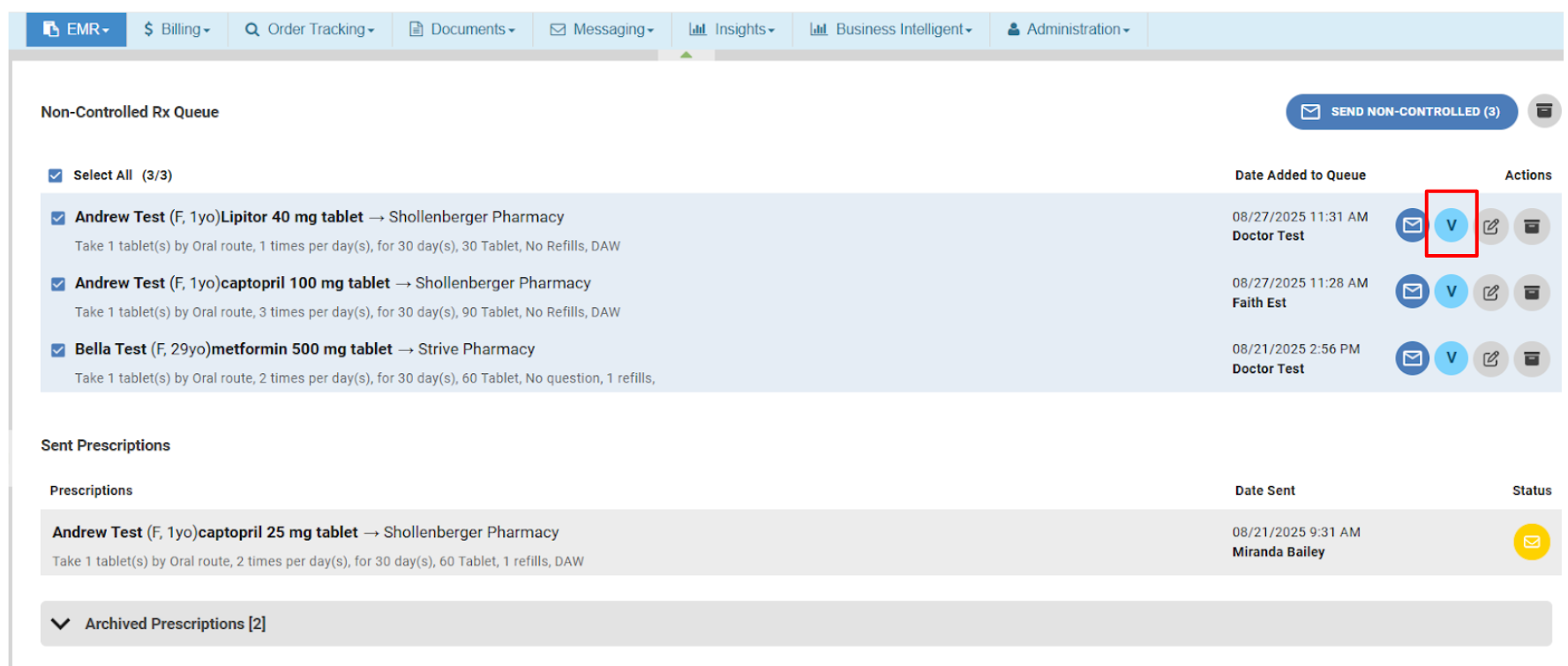 - Navigate to your Delegated Prescriptions queue, go to EMR → Non-Controlled Rx Queue (or Controlled Rx Queue).