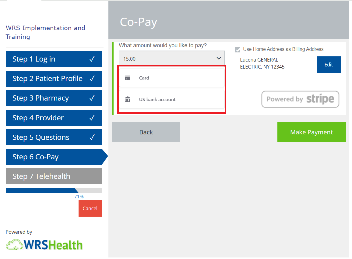 When Stripe Payments is enabled for your practice, the Check-In process includes a secure option to review outstanding balances and make co-payments using your credit or debit card. Follow the steps below to complete your check-in and payment quickly and safely.