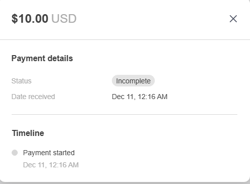 → Use this section to track revenue, confirm processed charges, or investigate payment issues. Click any payment to view a detailed transaction timeline, including fees and balance impact.