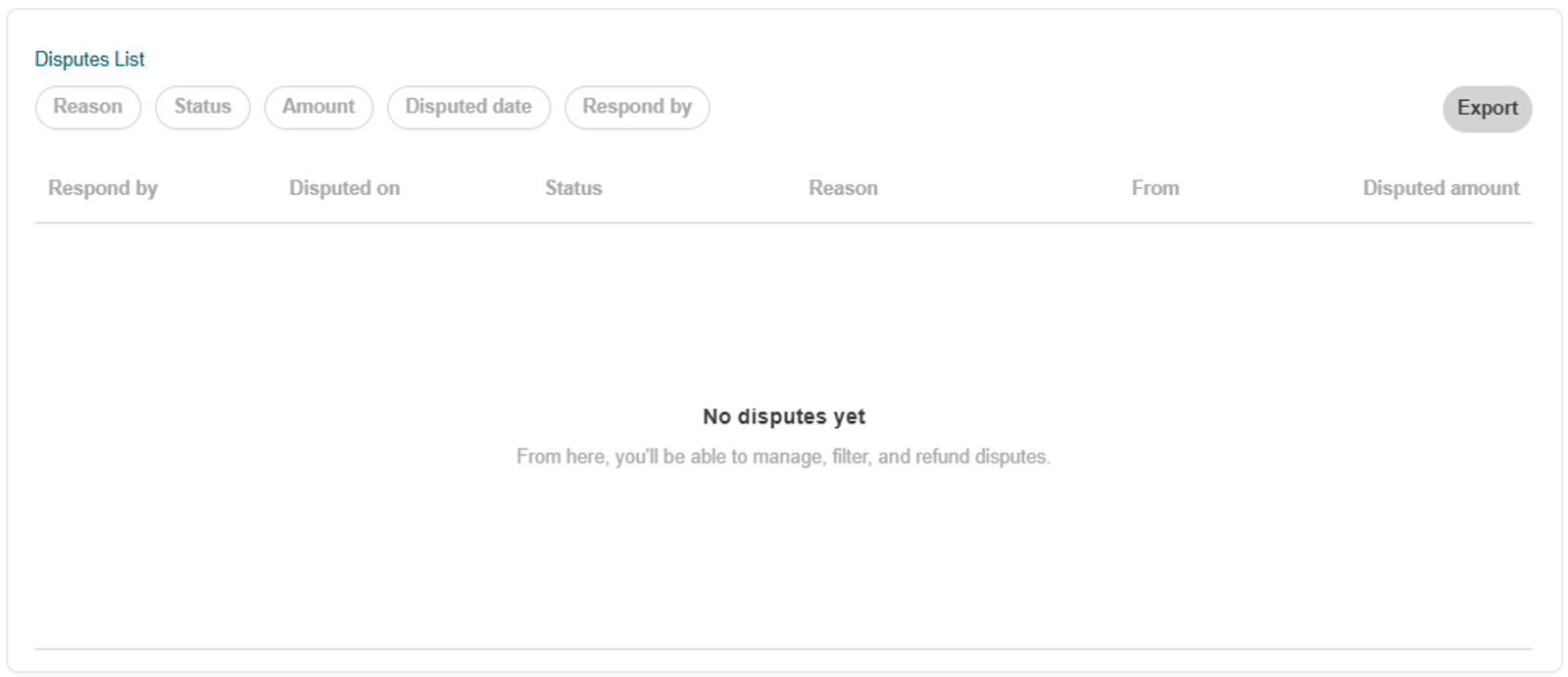 Disputes (if available)The Disputes section displays chargebacks or payment reversals initiated by a cardholder or financial institution. Use this section to: