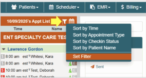 3. Click the Filter icon and select Set Filter to open the appointment filter panel.