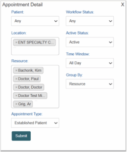 5. Adjust other filters as needed (e.g., appointment type, status, or location).